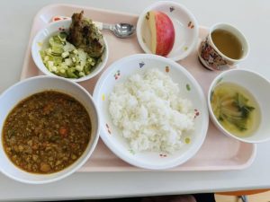 園長先生、保育園の給食をご馳走してくれました